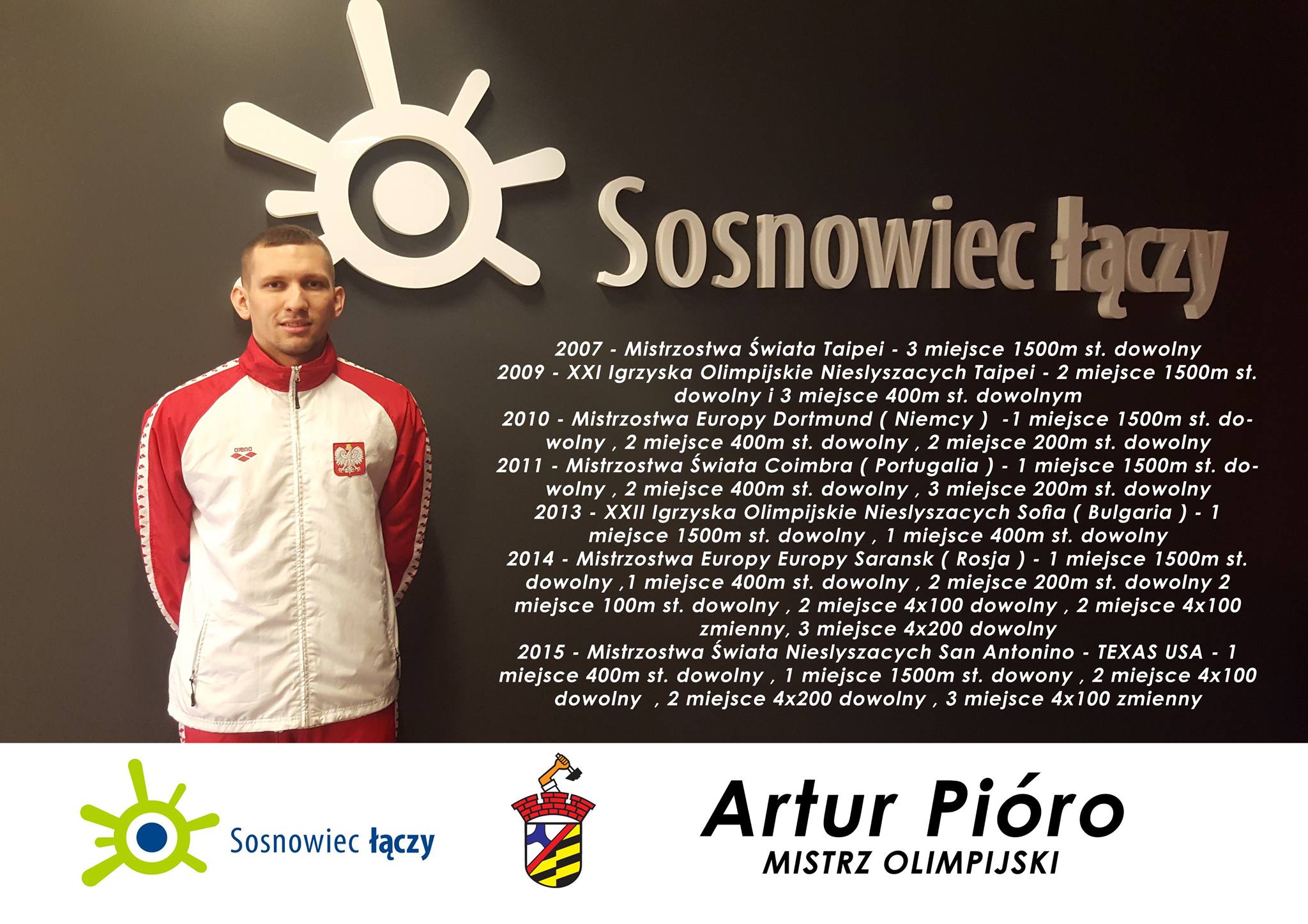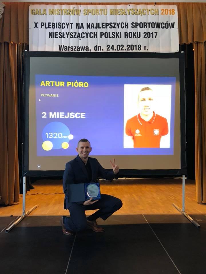 ARTUR PIÓRO - utalentowany pływak, Mistrz Świata i Europy, srebrny medalista Olimpiady w Taipei, rekordzista Świata i Europy na kilku dystansach pływackich.rnrnUrodził się 15.05.1991 roku w Sosnowcu. Od urodzenia jest osobą niesłyszącą. Od 10 lat uprawia profesjonalnie pływanie. W swojej dotychczasowej karierze ustanowił 307 rekordów Polski w pływaniu niesłyszących. Jest rekordzistą świata seniorów na dystansie 1500 m styl.